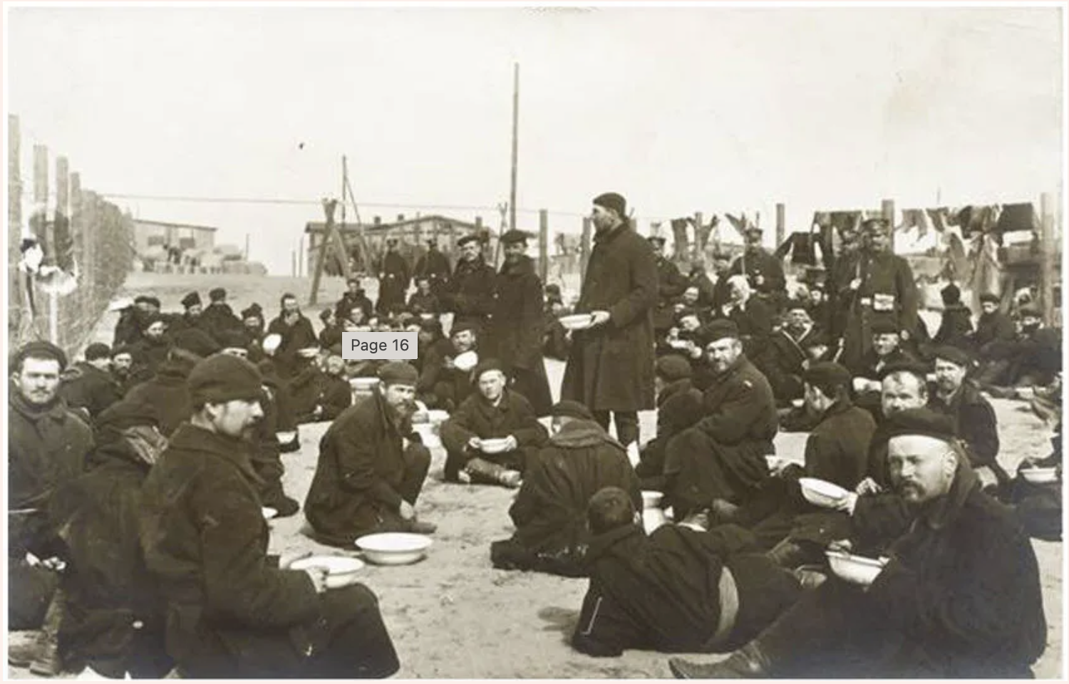 An archive photograph of prisoners of war at the Czersk camp (Dawid Kobiałka, Creativity behind barbed wire (2018))
